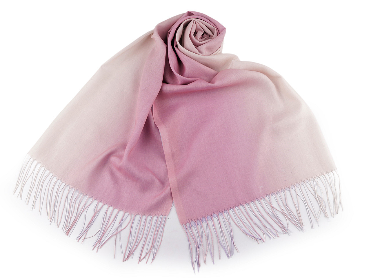 Letní šátek / šála s třásněmi ombré 70x180 cm - 1 ks - 5 starorůžová sv. fialová
