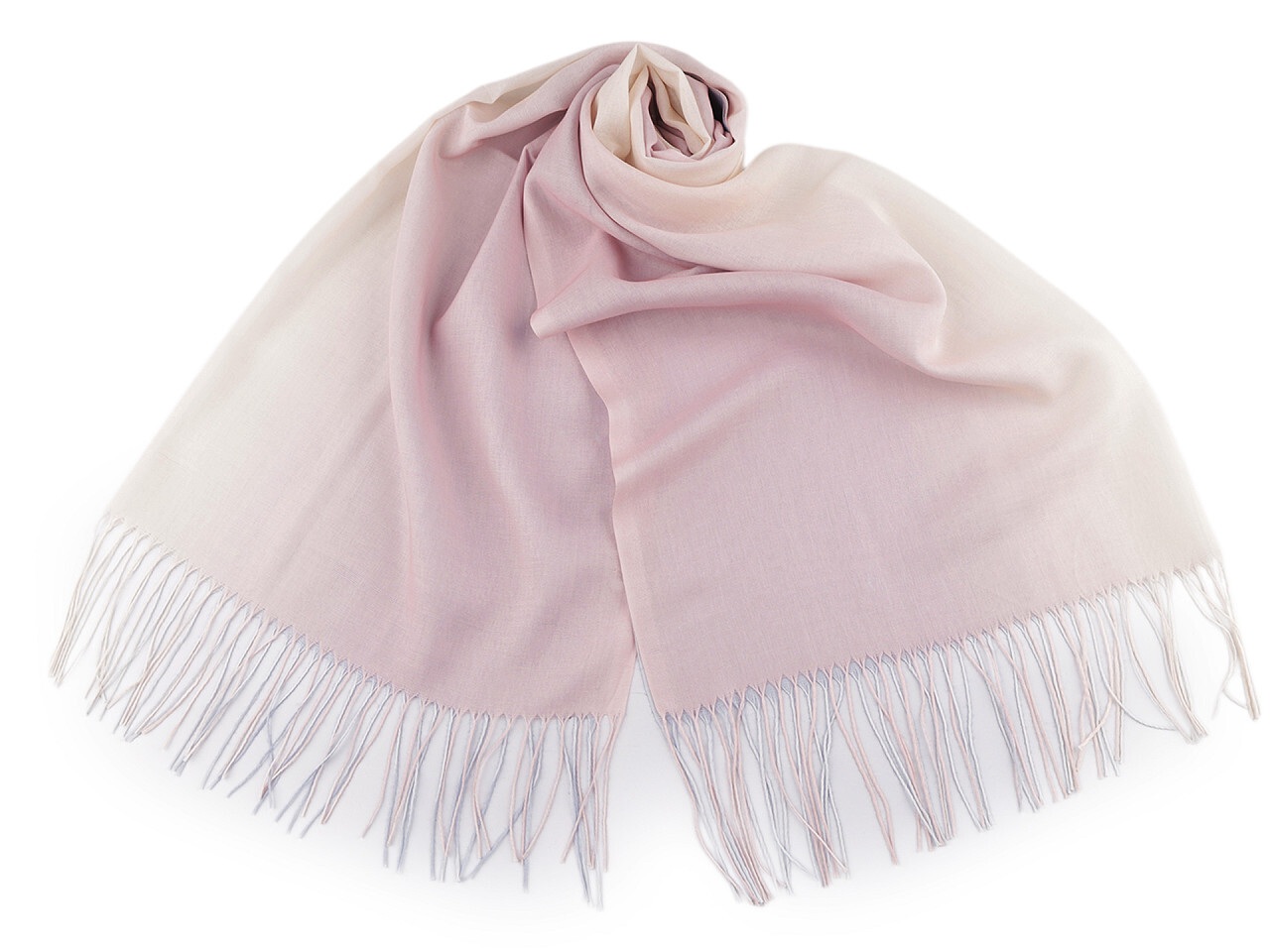 Letní šátek / šála s třásněmi ombré 70x180 cm - 1 ks - 1 modrošedá sv. růžová světlá