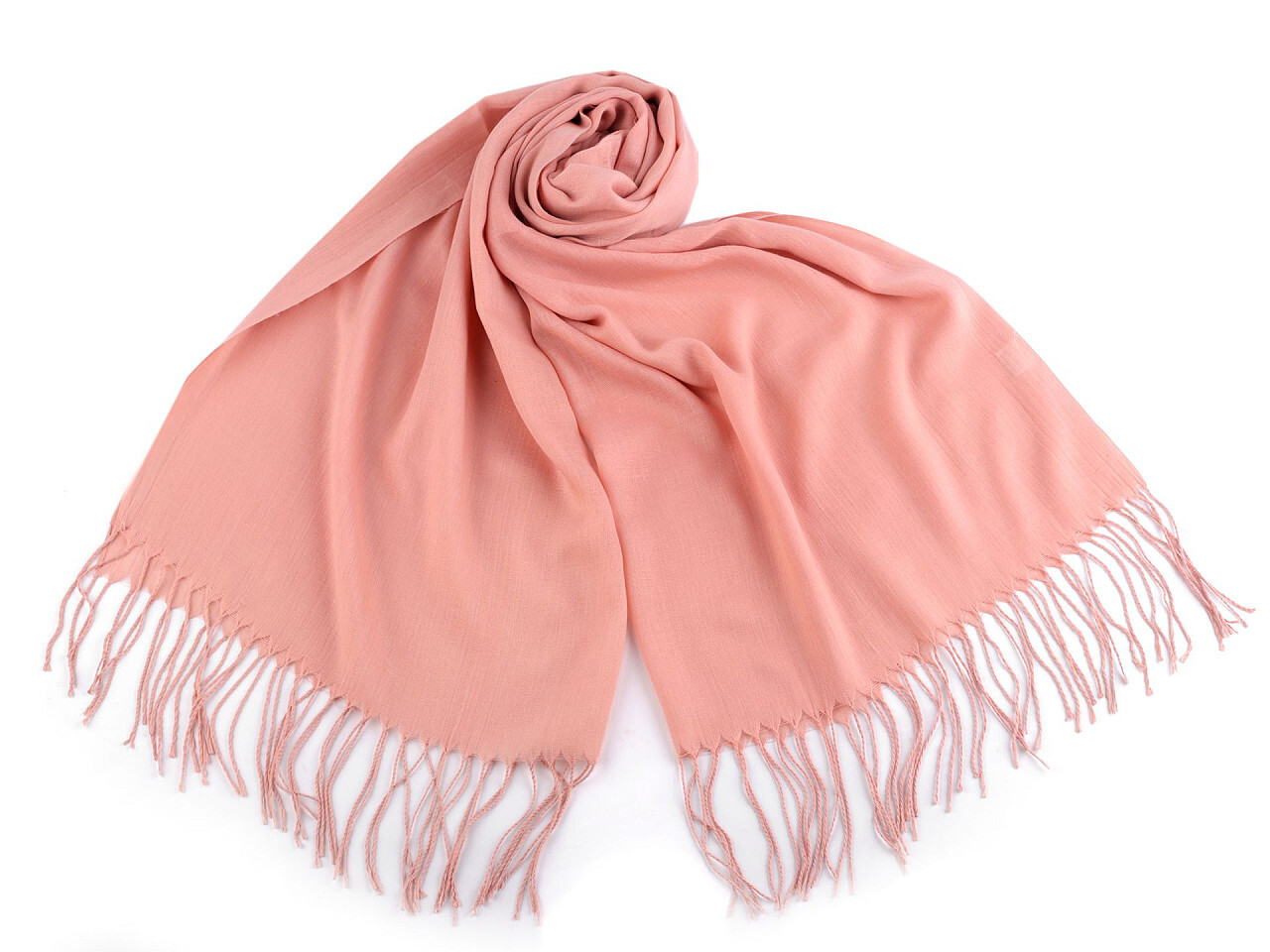 Letní šátek / šála s třásněmi jednobarevný 70x175 cm - 1 ks - 5 pudrová tmavá