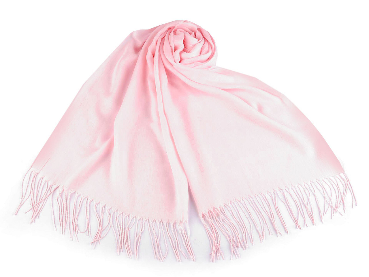 Letní šátek / šála s třásněmi jednobarevný 70x175 cm - 1 ks - 4 růžová nejsv.