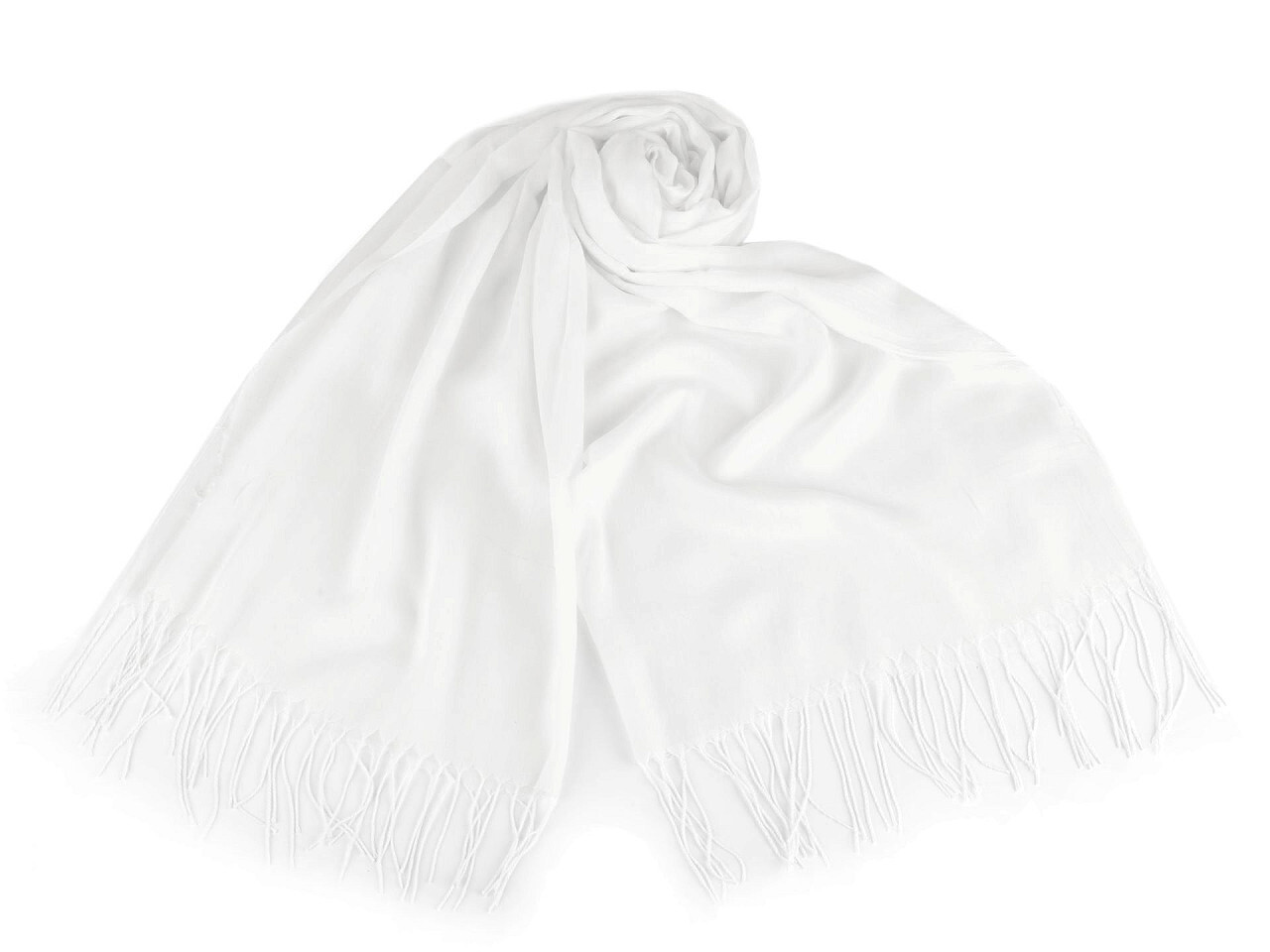 Letní šátek / šála s třásněmi jednobarevný 70x175 cm - 1 ks - 1 Off White