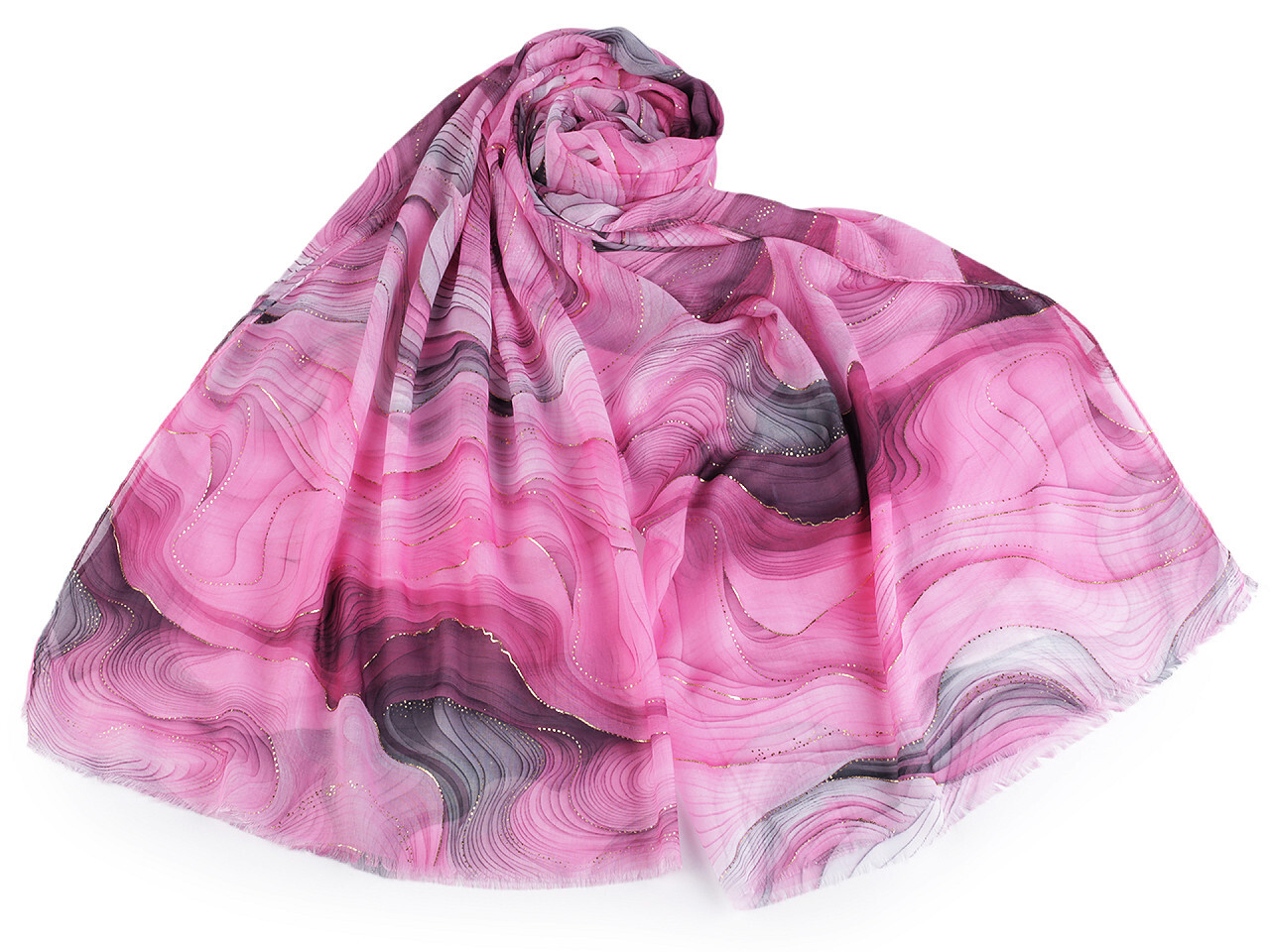 Letní šátek / šála se zlatým potiskem 70x175 cm - 1 ks - 3 růžová