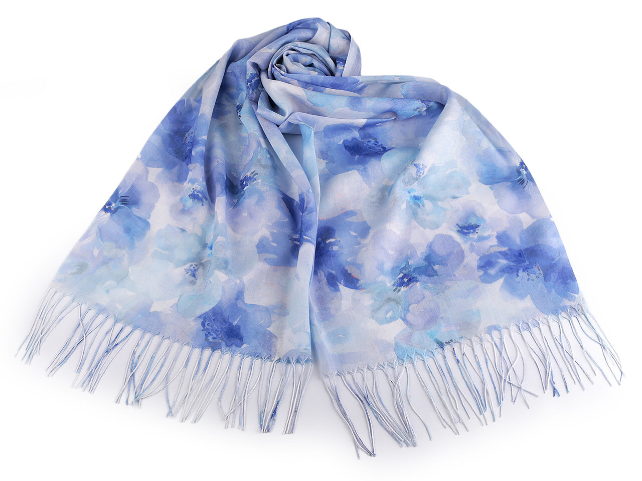 Letní šátek / šála s třásněmi květy 70x180 cm - 1 ks - 7 modrá světlá