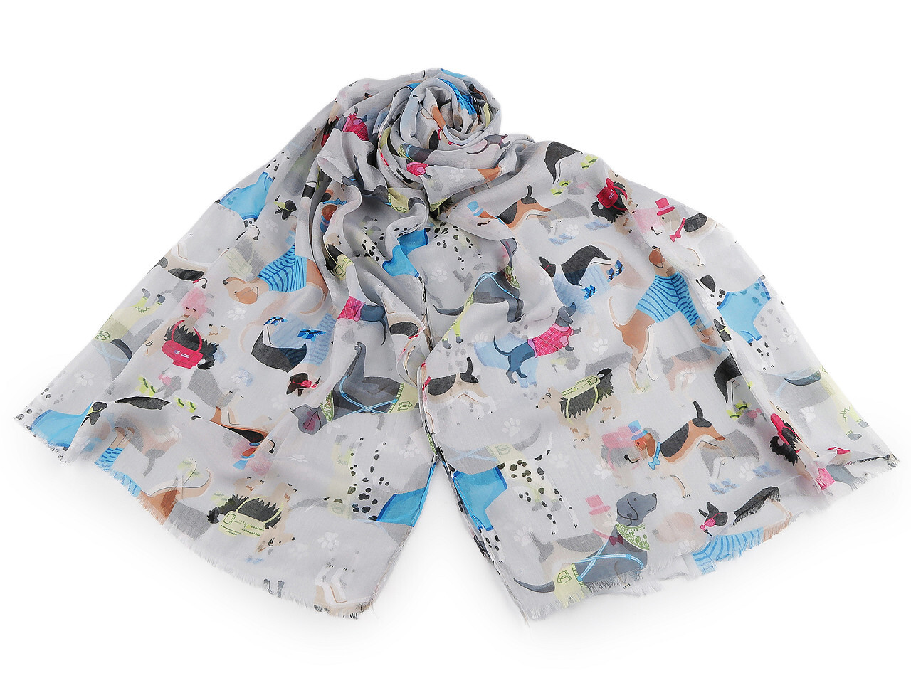 Letní šátek / šála kočky a psi 70x180 cm - 1 ks - 4 šedá světlá pejsek
