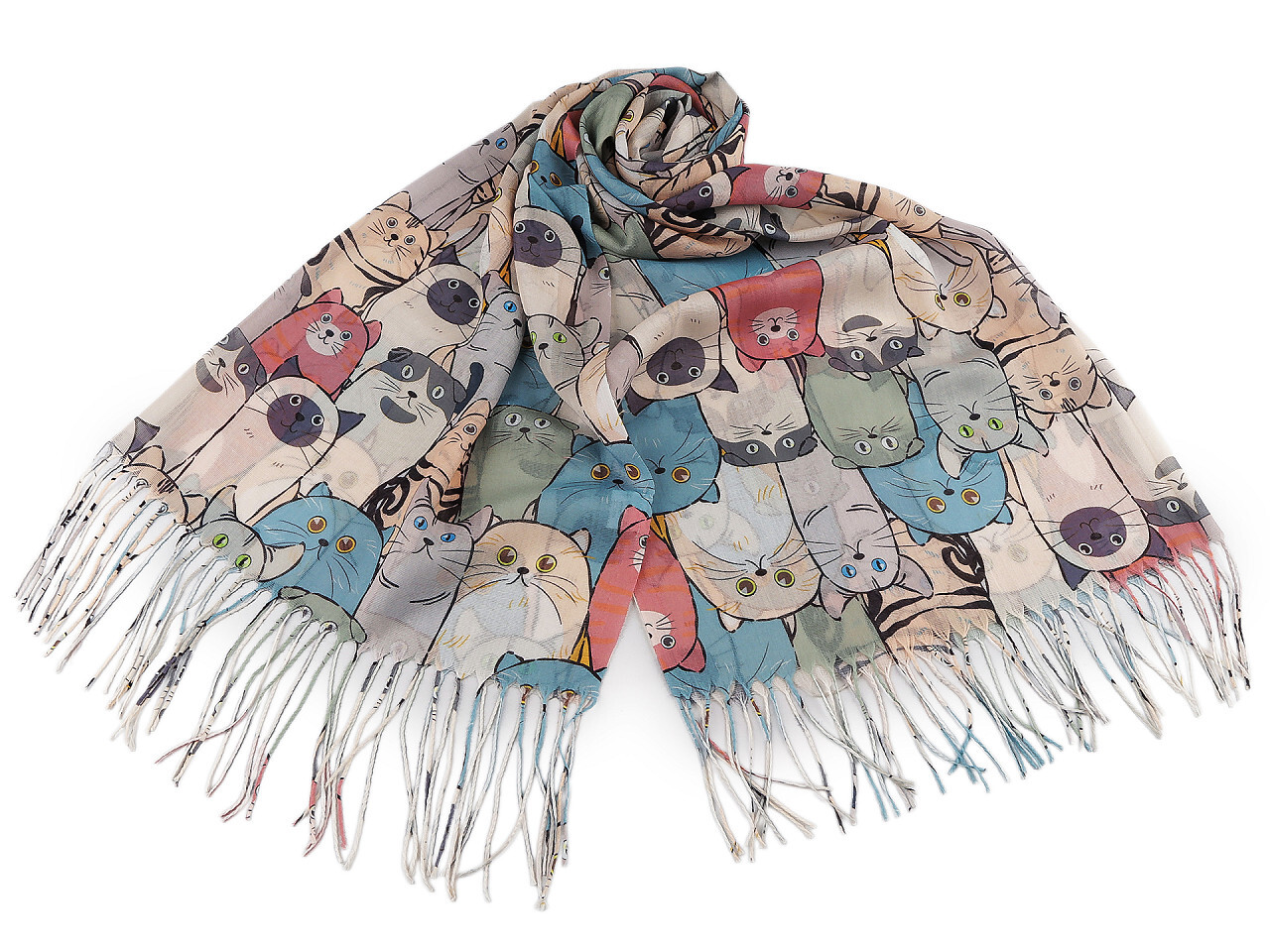 Letní šátek s motivem barevných koček představuje nejen praktický, ale i stylový doplněk, který dodá vašemu outfitu osobitý a hravý nádech. Je vyroben tak, aby byl vzdušný a lehký - ideální volba pro teplé letní dny, kdy potřebujete něco, co nezatíží, ale zároveň zaujme.