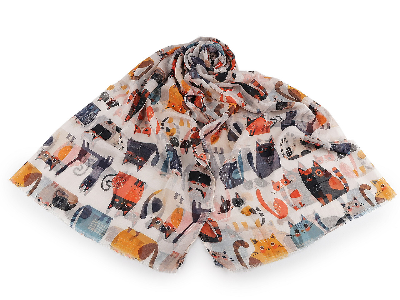 Letní šátek / šála kočky a psi 70x180 cm - 1 ks - 6 béžová světlá kočka