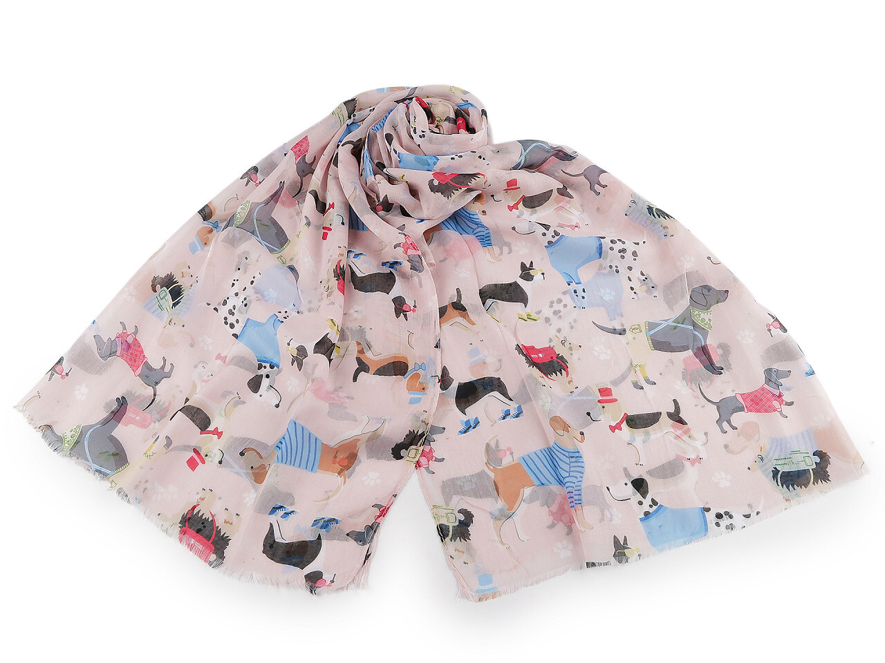 Letní šátek / šála kočky a psi 70x180 cm - 1 ks - 3 pudrová pejsek