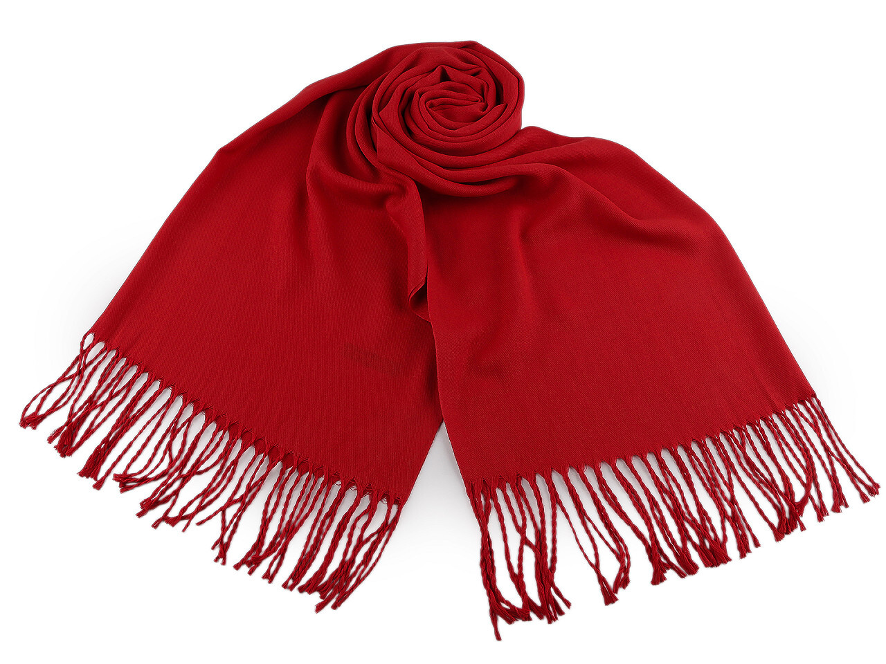 Šátek / šála jednobarevná s třásněmi 65x175 cm - 1 ks - 1 červená
