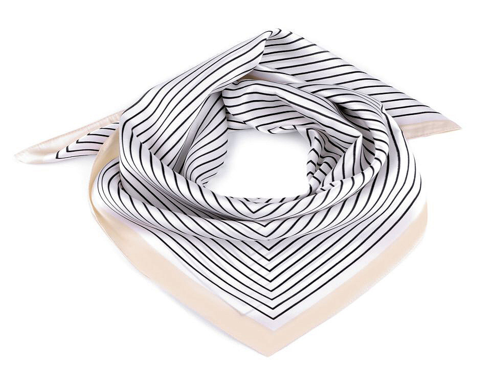 Saténový šátek s jemným proužkem 70x70 cm - 1 ks - 1 bílá