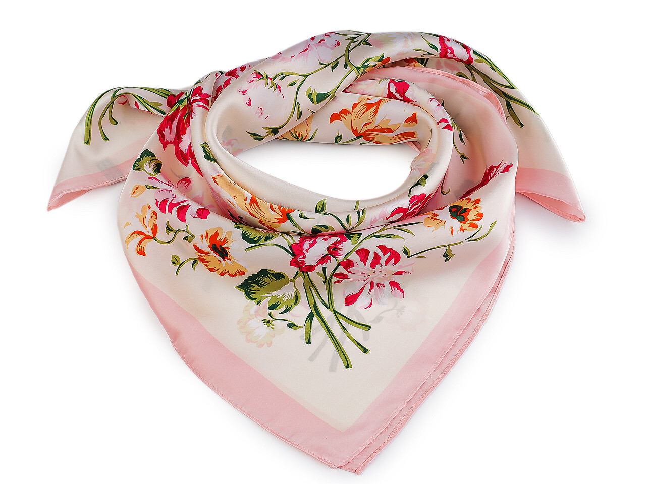 Saténový šátek 65x65 cm - 1 ks - 2 růžová lasturová