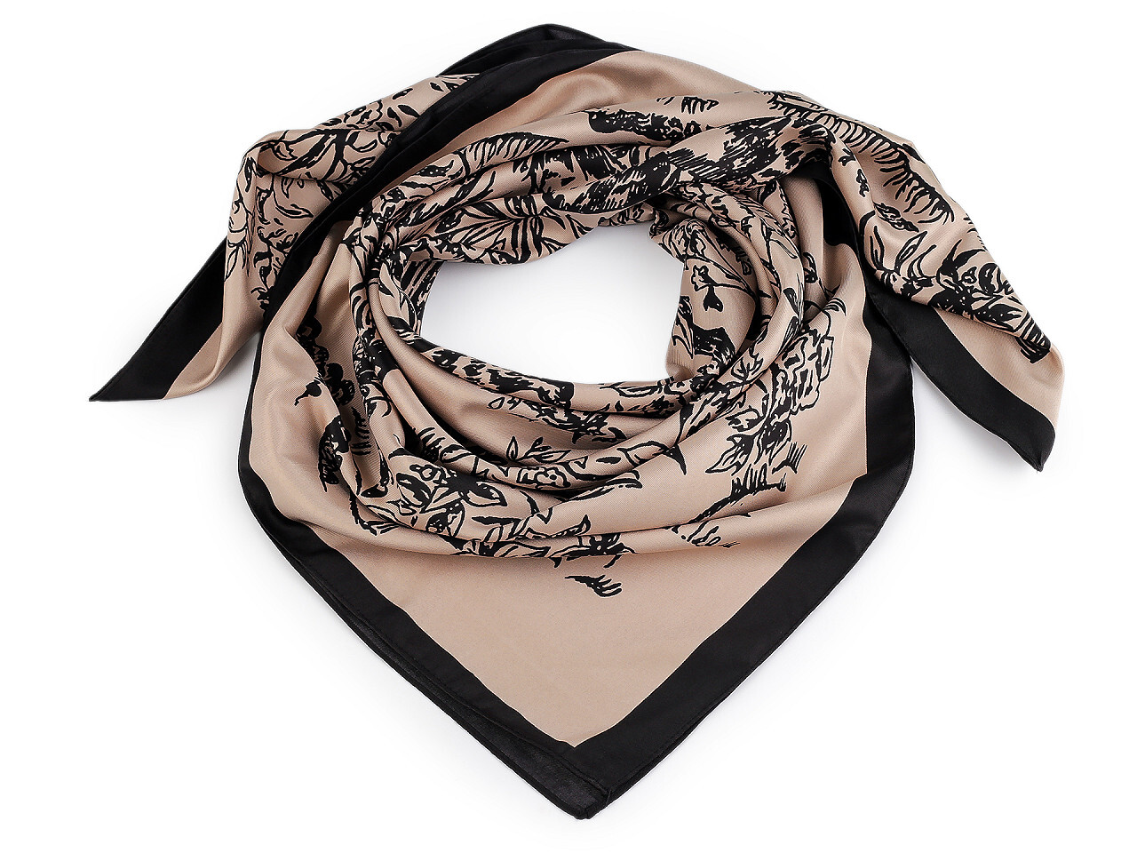 Saténový šátek 90x90 cm - 1 ks - 1 béžová