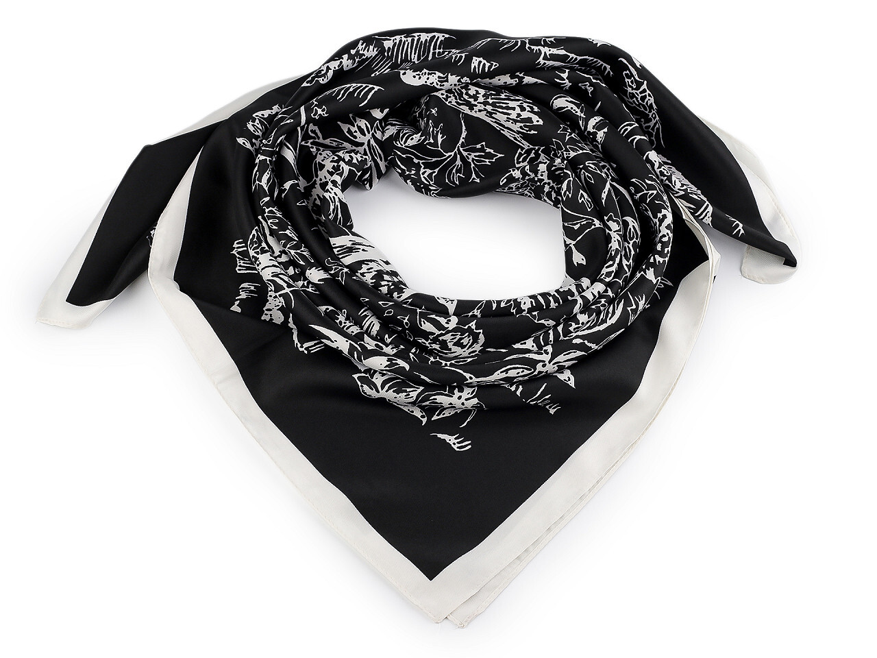 Saténový šátek 90x90 cm - 1 ks - 5 černá
