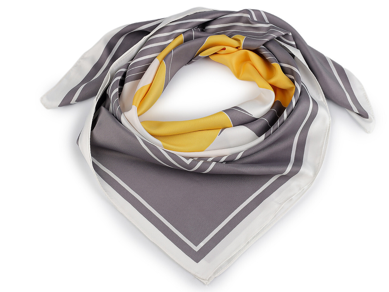 Saténový šátek 90x90 cm - 1 ks - 4 šedá