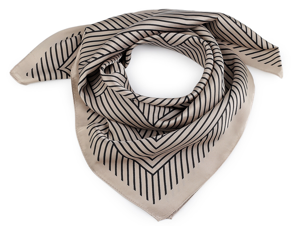 Saténový šátek 65x65 cm - 1 ks - 3 šedobéžová černá