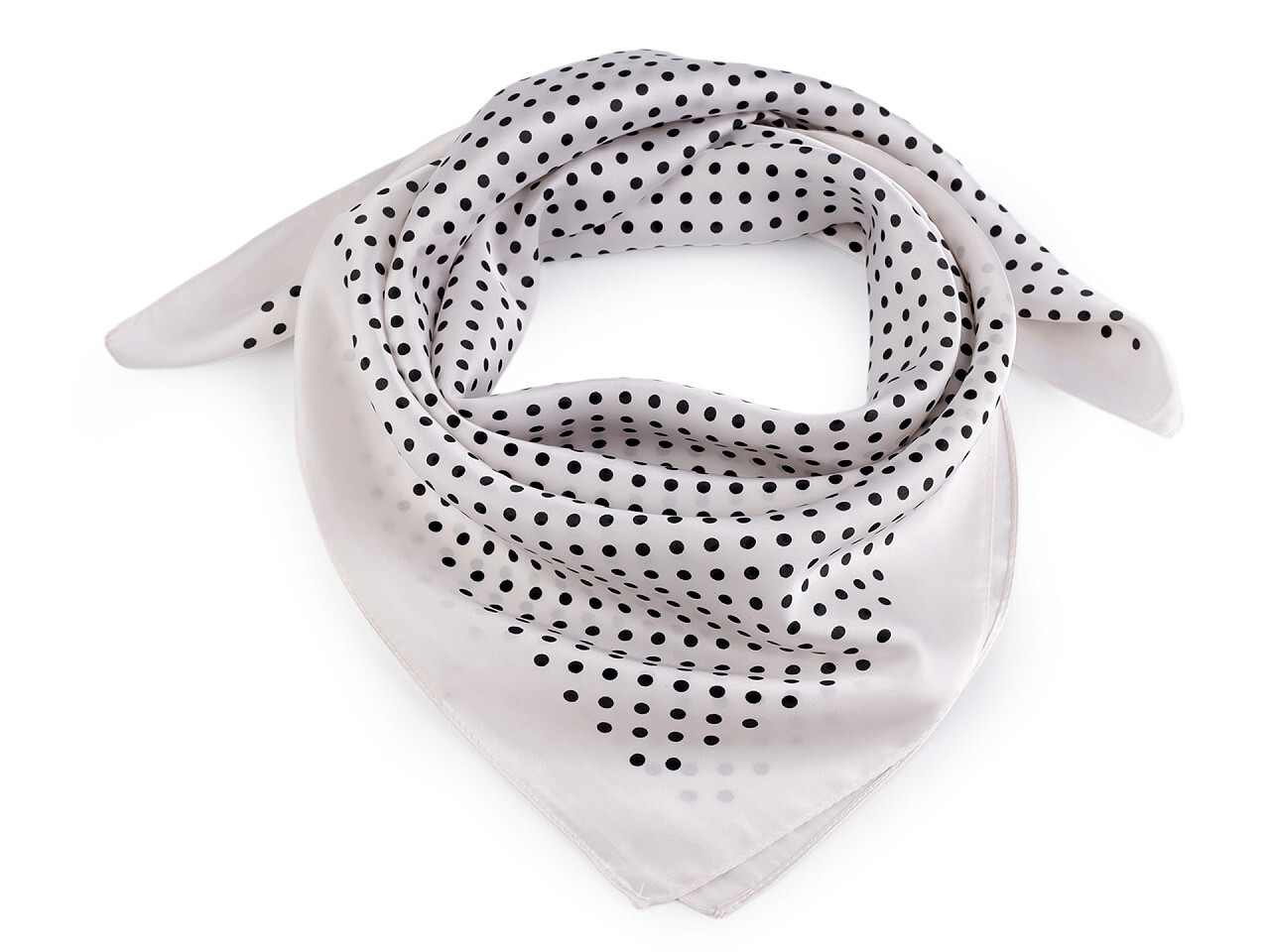 Saténový šátek puntík 65x65 cm - 1 ks - 1 bílá