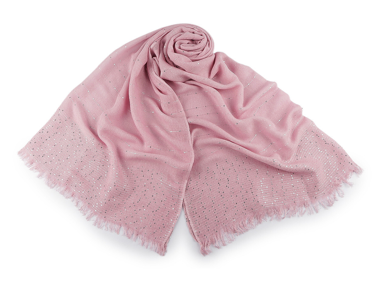 Šátek / šála s flitry 80x185 cm - 1 ks - 7 pudrová