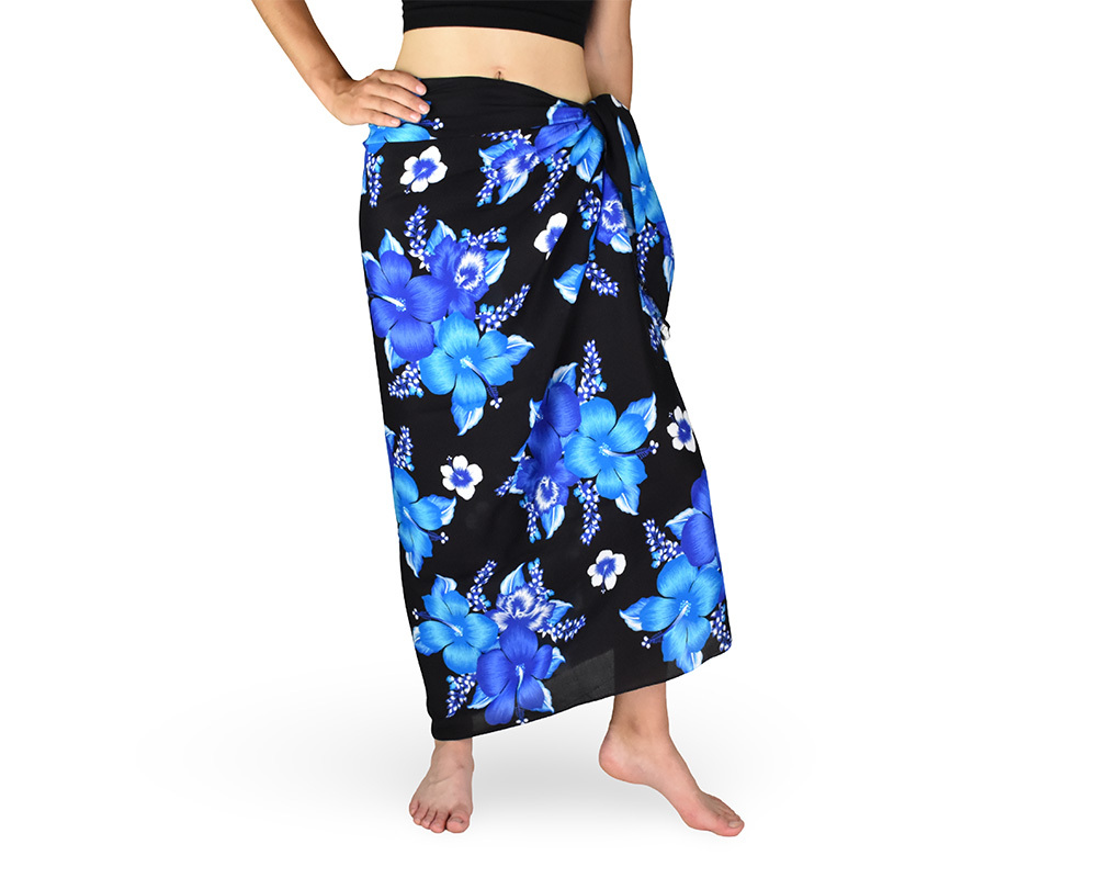 Sarong - Pareo REN, Hibis, černý, modrý květ, var. B