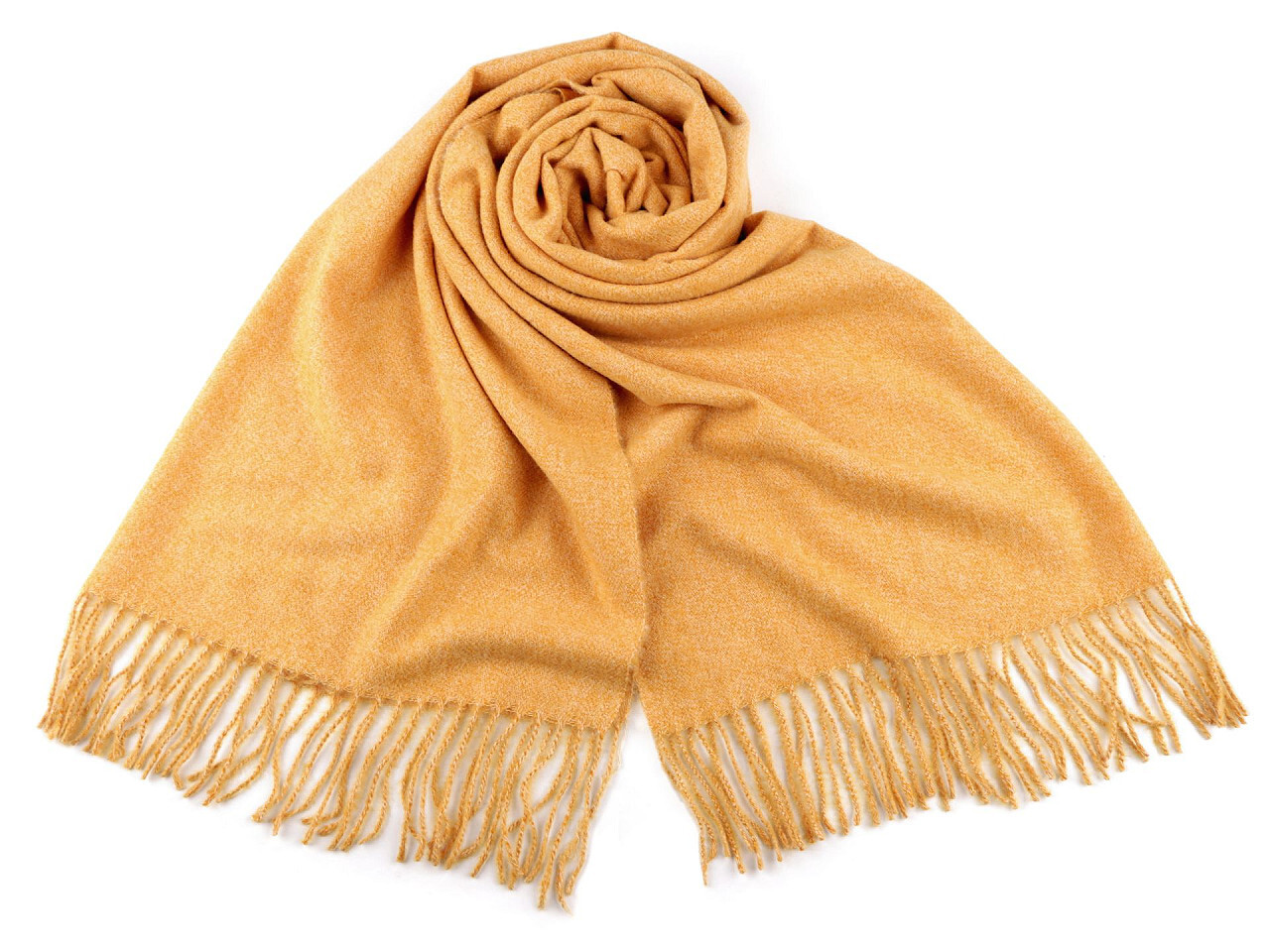 Šátek / šála / pléd s třásněmi 70x190 cm - 1 ks - 2 hořčicová
