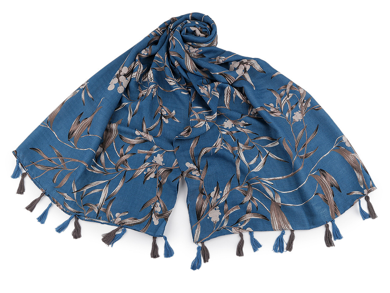 Šátek / šála / pléd s květy a střapci 80x180 cm - 1 ks - 4 modrá