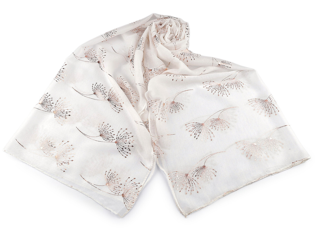 Šátek / šála se zlatým potiskem 70x180 cm - 1 ks - 1 krémová nejsvět. růžovozlatá