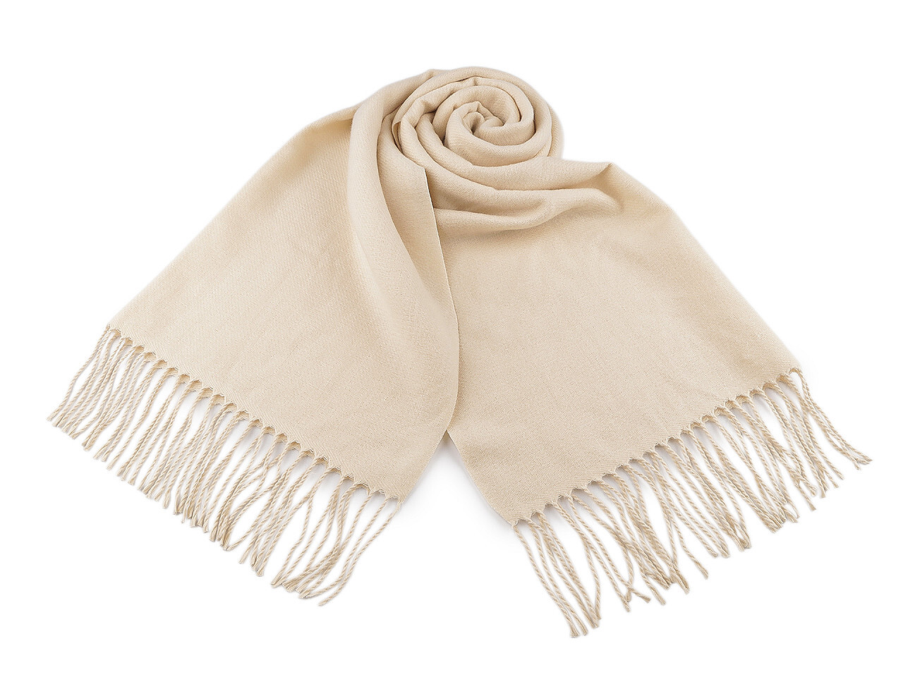 Zimní šála / pléd s třásněmi 70x180 cm - 1 ks - 1 béžová světlá oboustranný