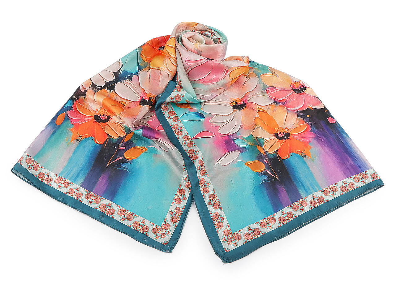 Saténový šátek / šála 70x175 cm - 1 ks - 2 tyrkys