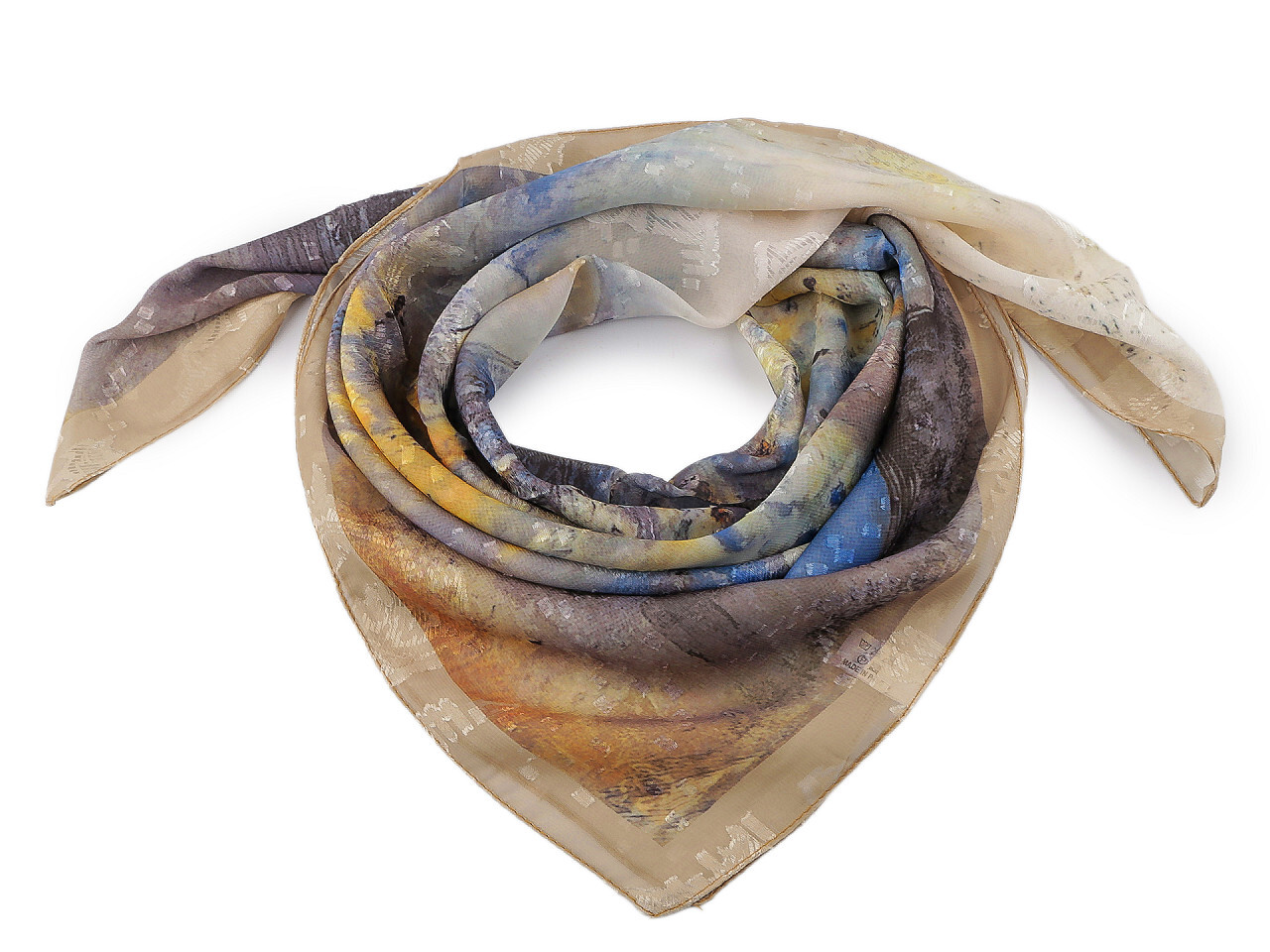 Šátek imitace hedvábí 70x70 cm - 1 ks - 3 béžová nejsv.