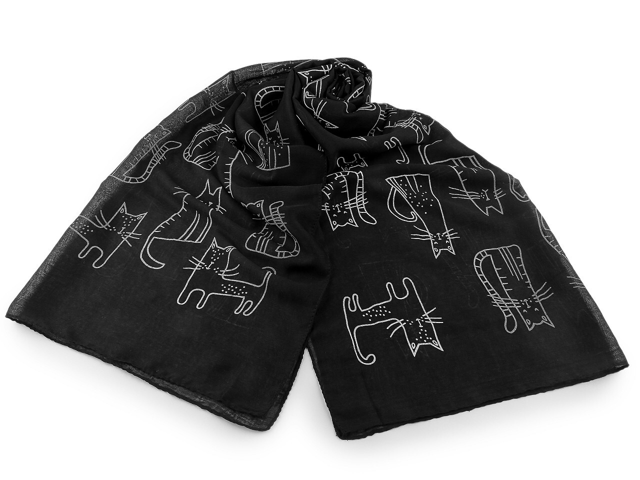 Letní šátek / šála kočky 70x180 cm - 1 ks - 6 černá