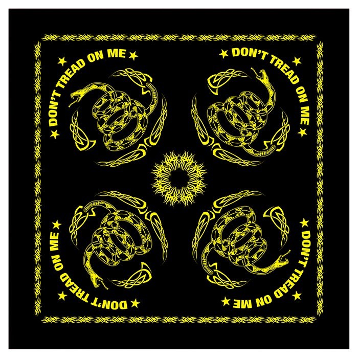 Čtyřcípý šátek Don´t Tread On Me. Rozměr: 55 x 55 cm. Materiál: 100 % bavlna. číst celé