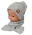 Baby Nellys Pletená čepice s šálou a rukavičky 3v1, STAR - šedá; 56/62 (0-3m)