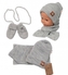 Baby Nellys Pletená čepice s šálou a rukavičky 3v1, STAR - šedá; 56/62 (0-3m)