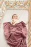 Koc Velvet jest to lekki kocyk wykonany z połączenia dwóch warstw tkaniny Velvet. Jest ona bardzo miękka i przyjemna w dotyku, a także łatwa w pielęgnacji. Sprawdzi się podczas spacerów w ciepłe słoneczne dni, można go używać jako: grubszy otulacz, matę do codziennych zabaw, kocyk plażowy lub osłonę podczas karmienia. Dodatkowym atutem są walory estetyczne kocyka - piękna tekstura tkaniny oraz wykończenie ozdobną tasiemką.
