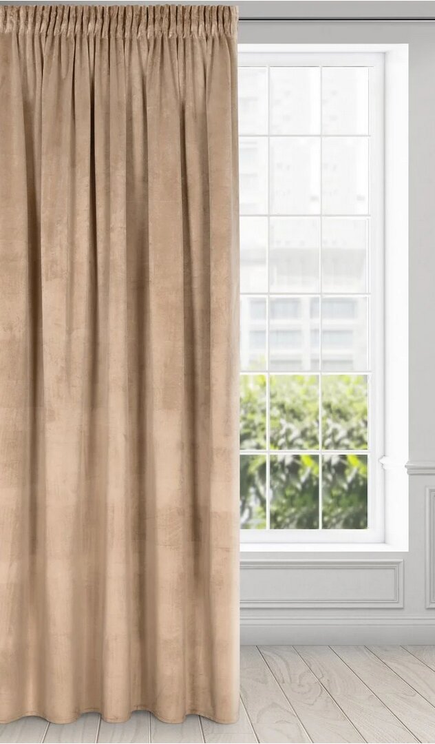 Dekorační závěs "VELVET" vyrobený ve vysoké kvalitě v moderních barvách do ložnice nebo obývacího pokoje v rozměru 140x270 cm s řasící páskou na zavěšení na žabky, háčky, tyčovou gárnyž. 1 kus v balení. 200 gr/m2. Závěs má ozdobné řasení.