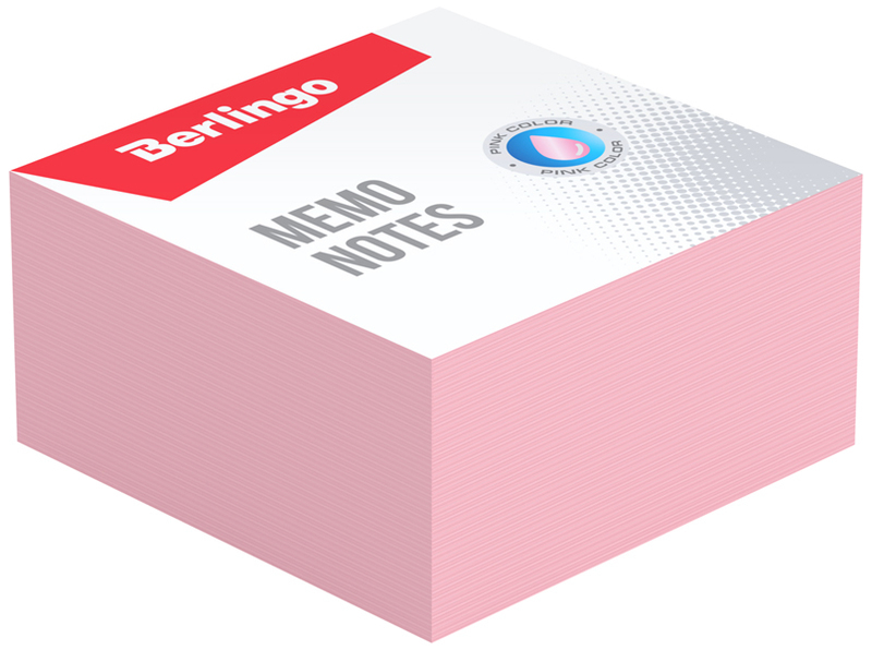 Kostka nieklejona, 9x9x4, 5cm, 80gr/m2, różowa, Berlingo