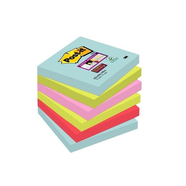 Silně lepicí bločky v nových intenzivních barvách Miami Ideální i pro vertikální lepení Barvy - 2x azurová, 2x neonová zelená, 1x neonová růžová, 1x barva vlčího máku Bločky jsou baleny jednotlivě Rozměry: 76,0 x 76,0 mm 90 lístků v bločku