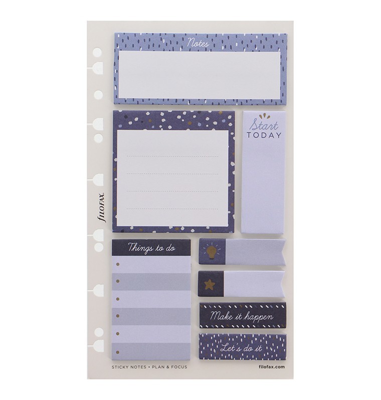 Sada lepicích bločků pro všechny vaše důležité poznámky. Uchycení sady bylo navrženo tak, abyste ji mohli umístit do vašeho diáře či Clipbooku velikosti A5 nebo Osobní a také do zápisníku Filofax Notebook A5.