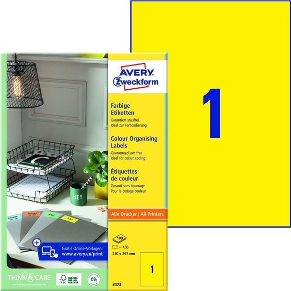 Žluté univerzální etikety, 210 x 297 mm, 100 ks