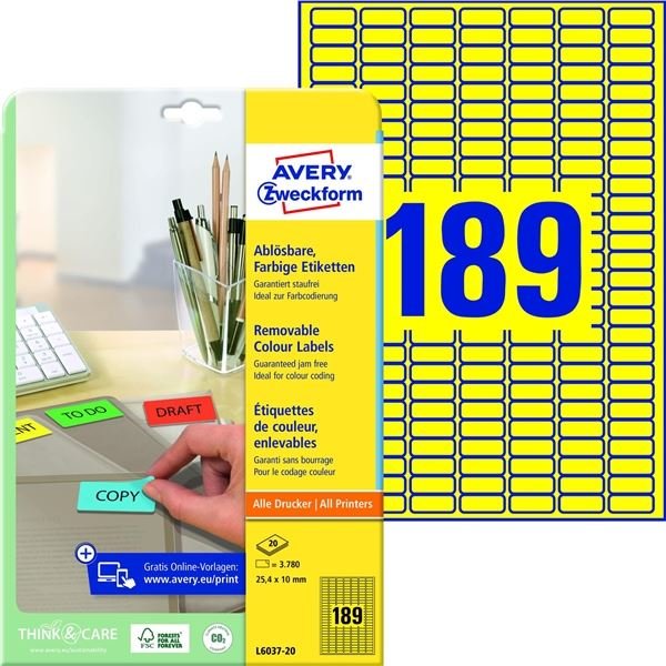 Snímat. etikety Avery,žluté,25,4 x 10 mm,3 780 ks