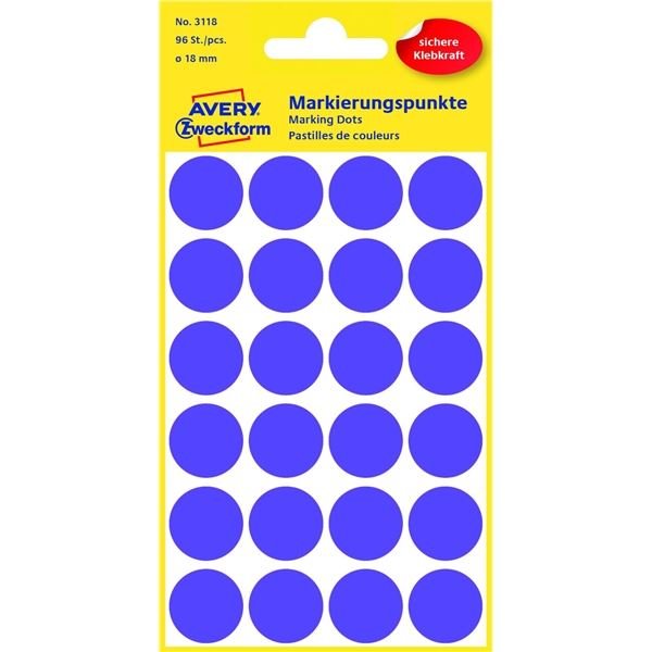 Kulaté etikety Avery, fialové, průměr 18 mm, 96 ks