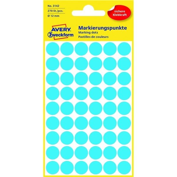 Kulaté etikety Avery, modré, průměr 12 mm, 270 ks