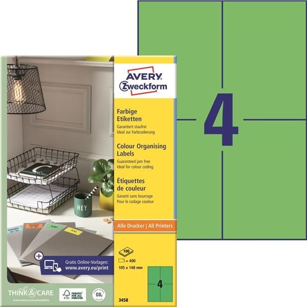 Zelené univerzální etikety, 105 x 148 mm, 400 ks