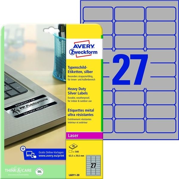 Perfektní řešení pro trvalé a spolehlivé označení - tyto stříbrné polyesterové etikety značky Avery vám zajistí, že vaše produkty, majetek i varovné nápisy budou vždy jasně identifikovatelné a odolné vůči nepříznivým vlivům.