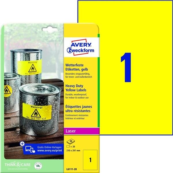 Vel.od.PE etik.Avery -žl.,210x297mm,20ks