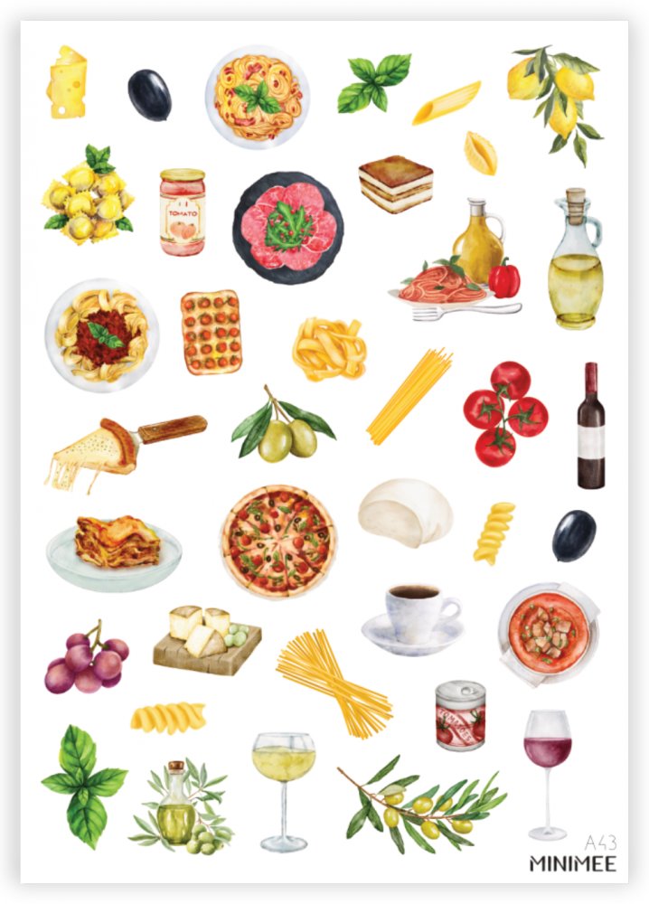 Krásné samolepky s motivy oblíbených italských dobrot přinesou do vašeho denního života kousek italské atmosféry a radosti z jídla. Jsou ideální pro všechny milovníky italské kuchyně a skvěle ozdobí vaše diáře, dárky nebo domácí dekorace.