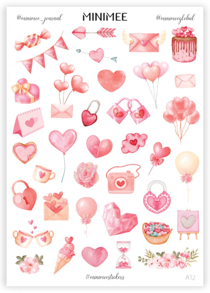 Aršík formátu A5 nabízí širokou škálu romantických motivů, jako jsou srdíčka, balónky a zámky, které snadno vylepší každý papír a dodají mu osobitý charakter. Samolepky jsou vyrobené z kvalitního matného materiálu s přírodním bílým vzhledem, takže perfektně ladí s papírem zápisníku MINIMEE a jinými povrchy. Díky preciznímu vyřezání jsou jednoduché na použití a bezpečně přilnou k povrchu, aniž by se odlepovaly.