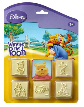 Balení obsahuje pět dřevěných razítek velikosti 4,5 a 4,5 cm se samolepkami postaviček na držátkách a barevnou inkoustovou poduškou.