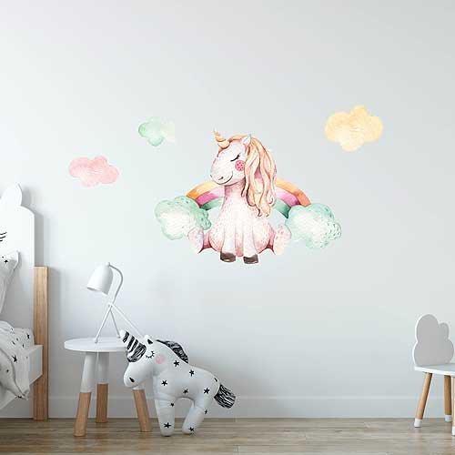 Samolepka na zeď s obrázkem jednorožce a duhy je krásná dekorace do dětského pokoje, kterým vaší holčičce zkrášlíte její pokojí. S oblíbeným jednorožcem se bude cítit příjemně a jistě bude i lehčeji usínat.