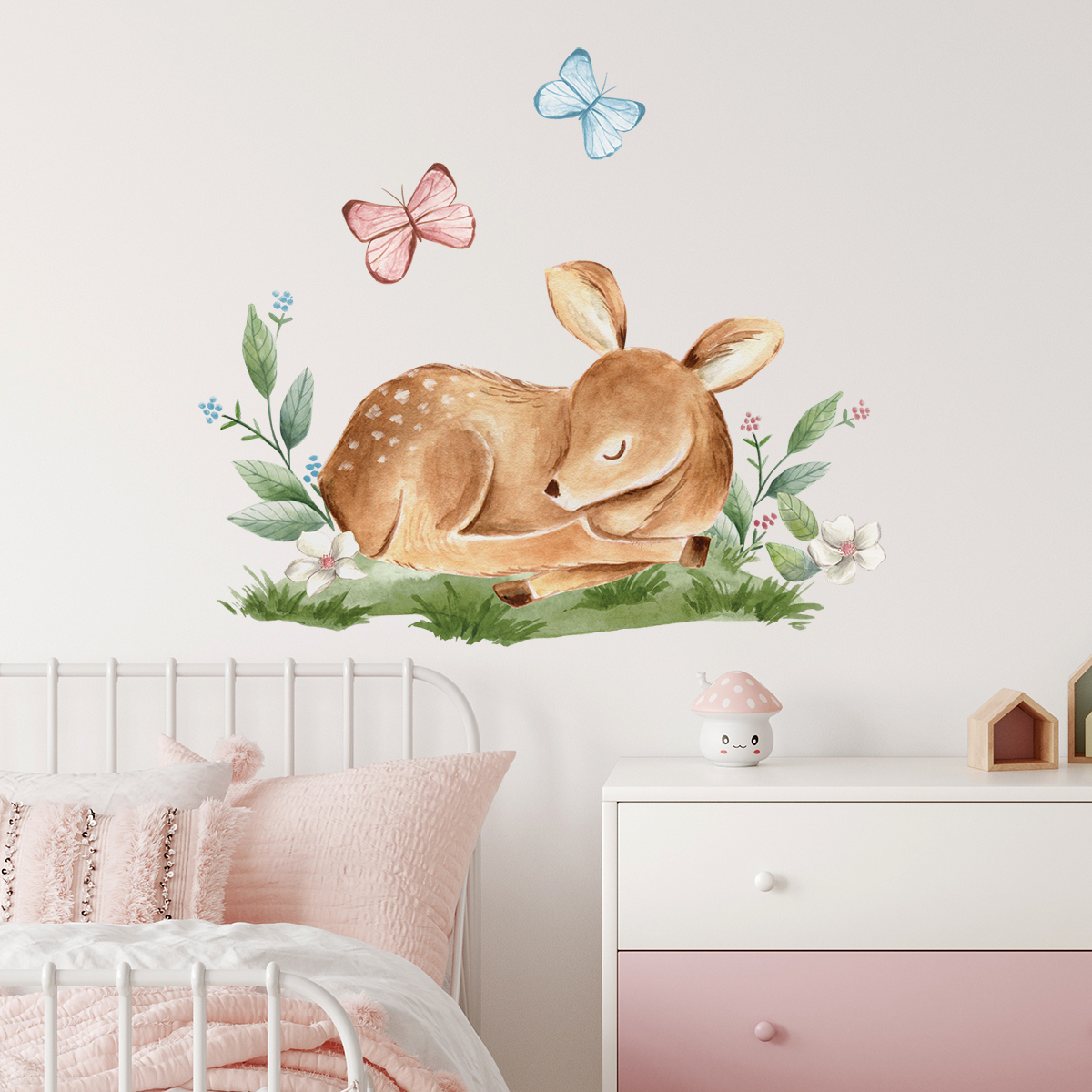 HOUSEDECOR Samolepka na zeď - Srnečka s motýly