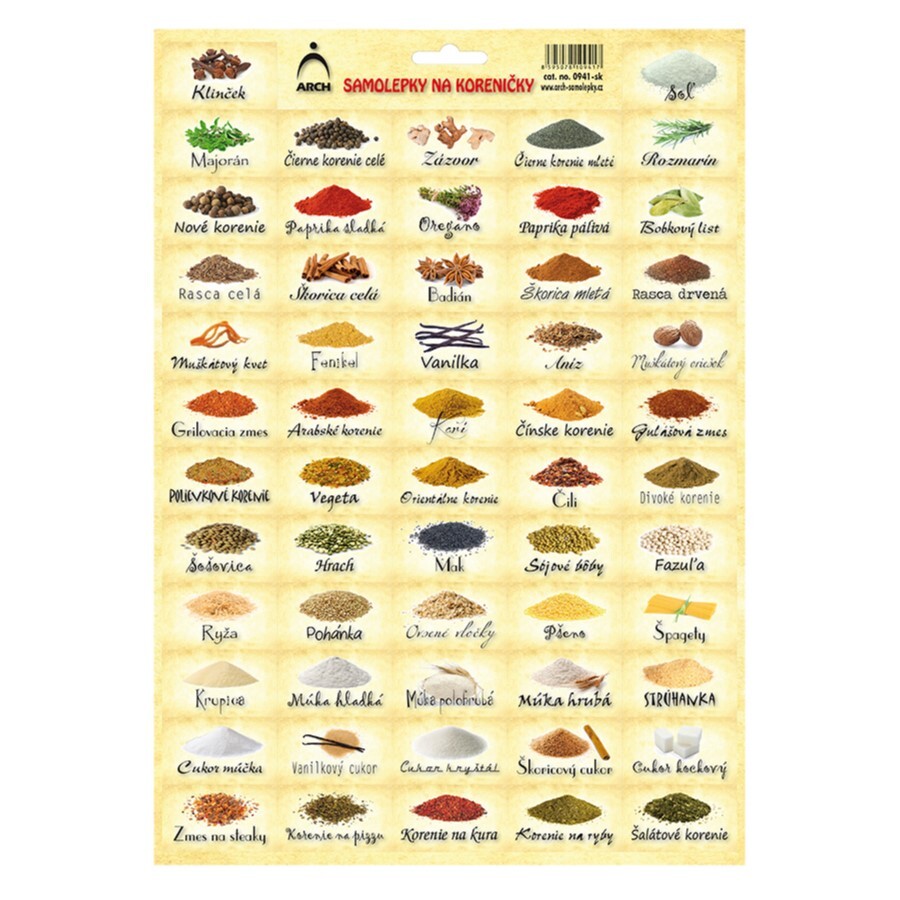 - Obsahuje 57 různých samolepek s názvy a obrázky koření