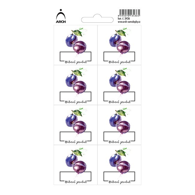 Švestky "Natural product" - 8 voděodolných etiket
